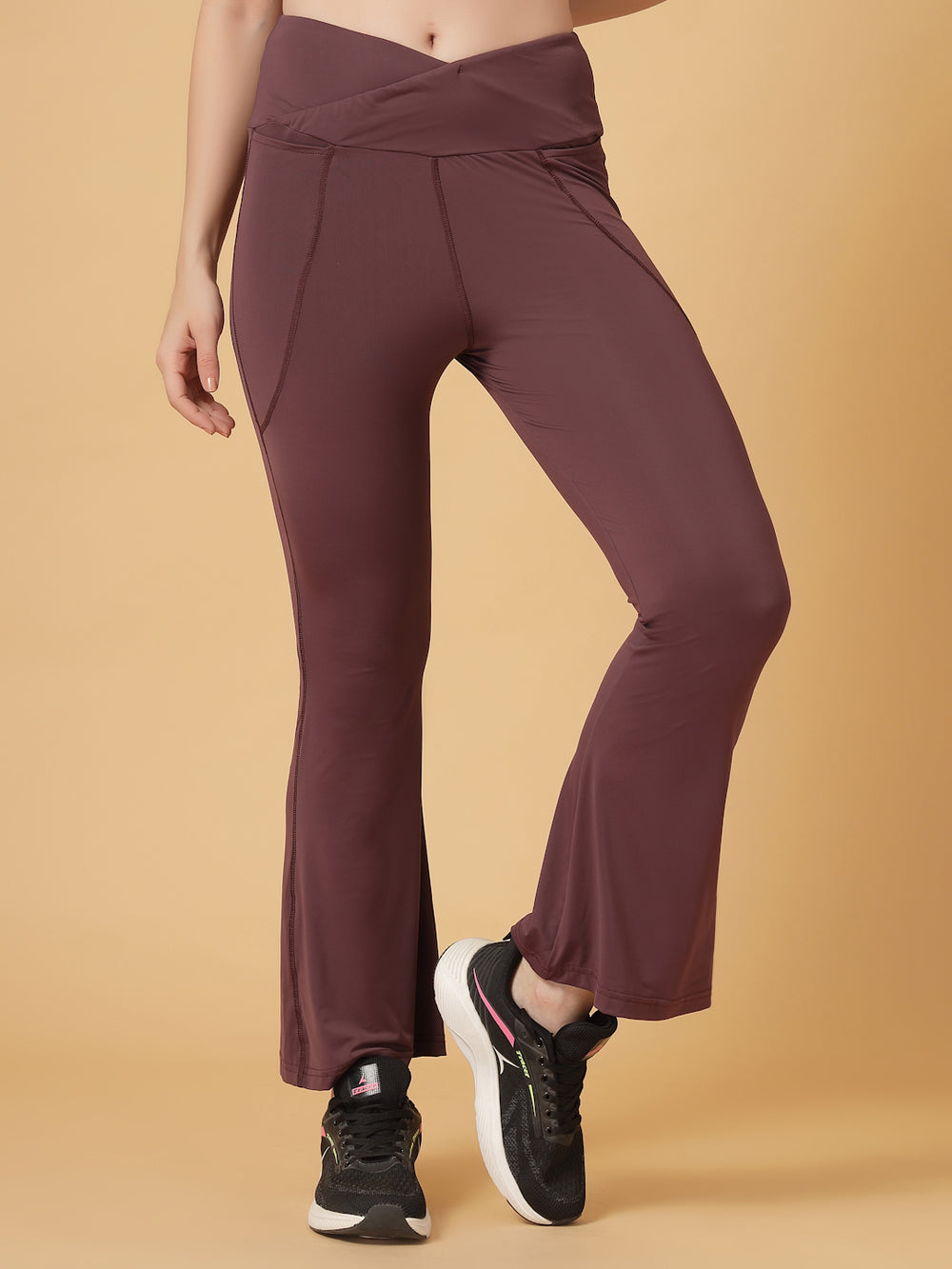 These burgundy flared leggings are a whole vibe—designed with a chic crossover waist, body-hugging comfort, and a flattering flare that lets you stride with style. With handy pockets and breathable 4-way stretch fabric, they’re perfect for workouts, coffee runs, or weekend lounging.