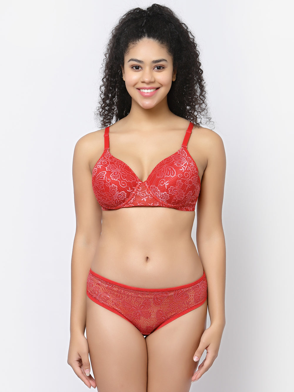| CUKOO is a contemporary brand for swimwear, activewear and lingerie giving comfort as well as stylish and colorful looks. This is a Red lacy super soft panty & lacy Bra lingerie set |