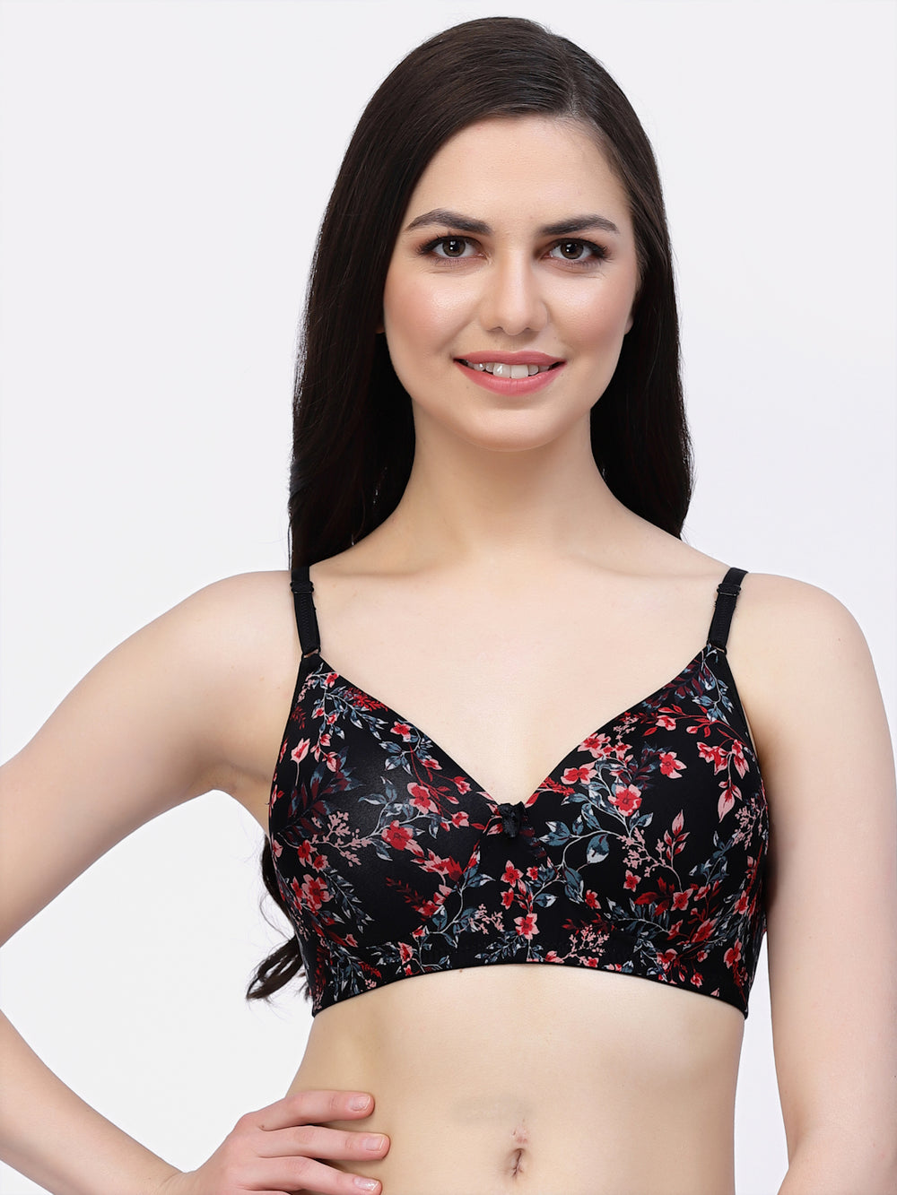 | CUKOO is a contemporary brand for swimwear, activewear and lingerie giving comfort as well as stylish and colorful looks. This is a lightly padded Black printed bra for everyday use. |