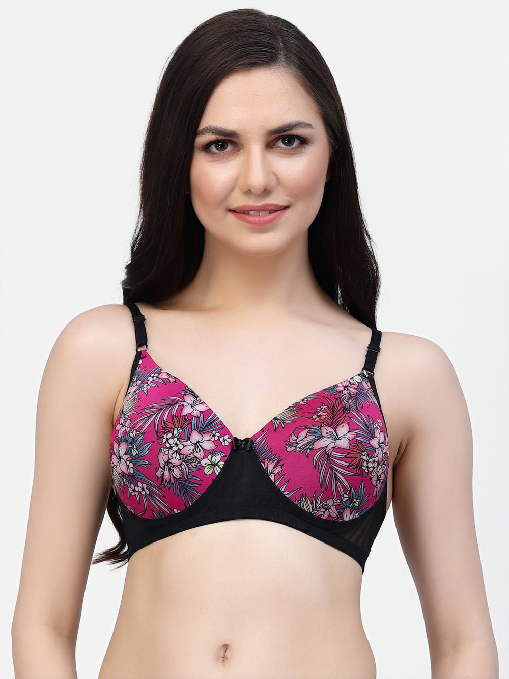 | CUKOO is a contemporary brand for swimwear, activewear and lingerie giving comfort as well as stylish and colorful looks. This is a lightly padded Pink floral Printed bra for everyday use. |