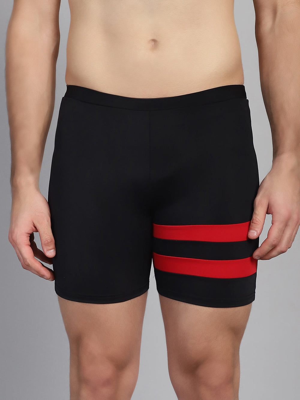 Cukoo is a contemporary brand for swimwear, activewear and lingerie giving comfort as well as stylish and colorful looks. This is a Black with 2 red stripes Men Swim Bottoms. You can wear this on your next beach vacation or a pool party .
