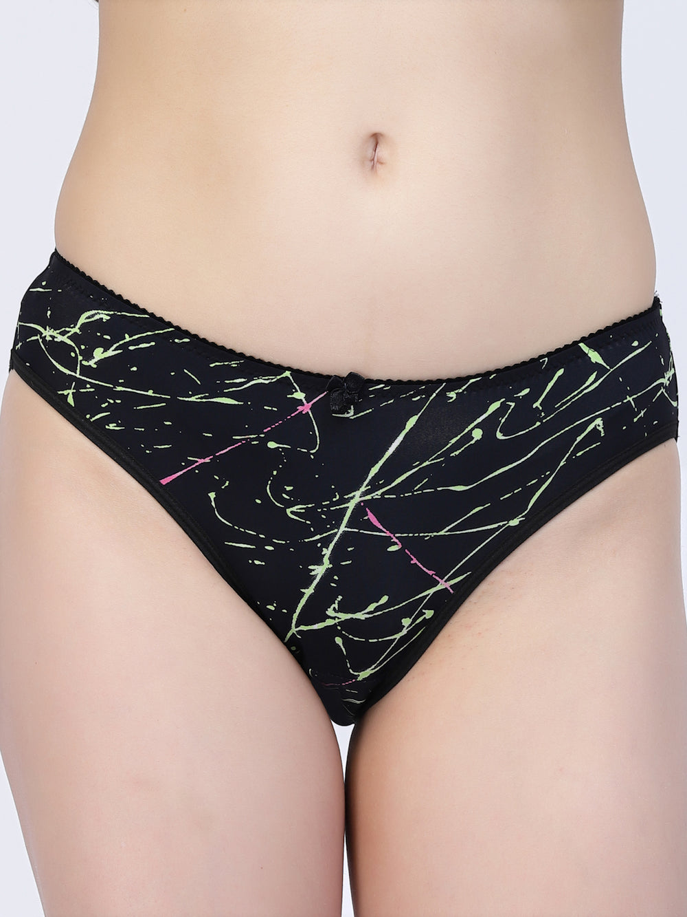 | CUKOO is a contemporary brand for swimwear, activewear and lingerie giving comfort as well as stylish and colorful looks. This is a Black Abstract Printed super soft hispster panty. |