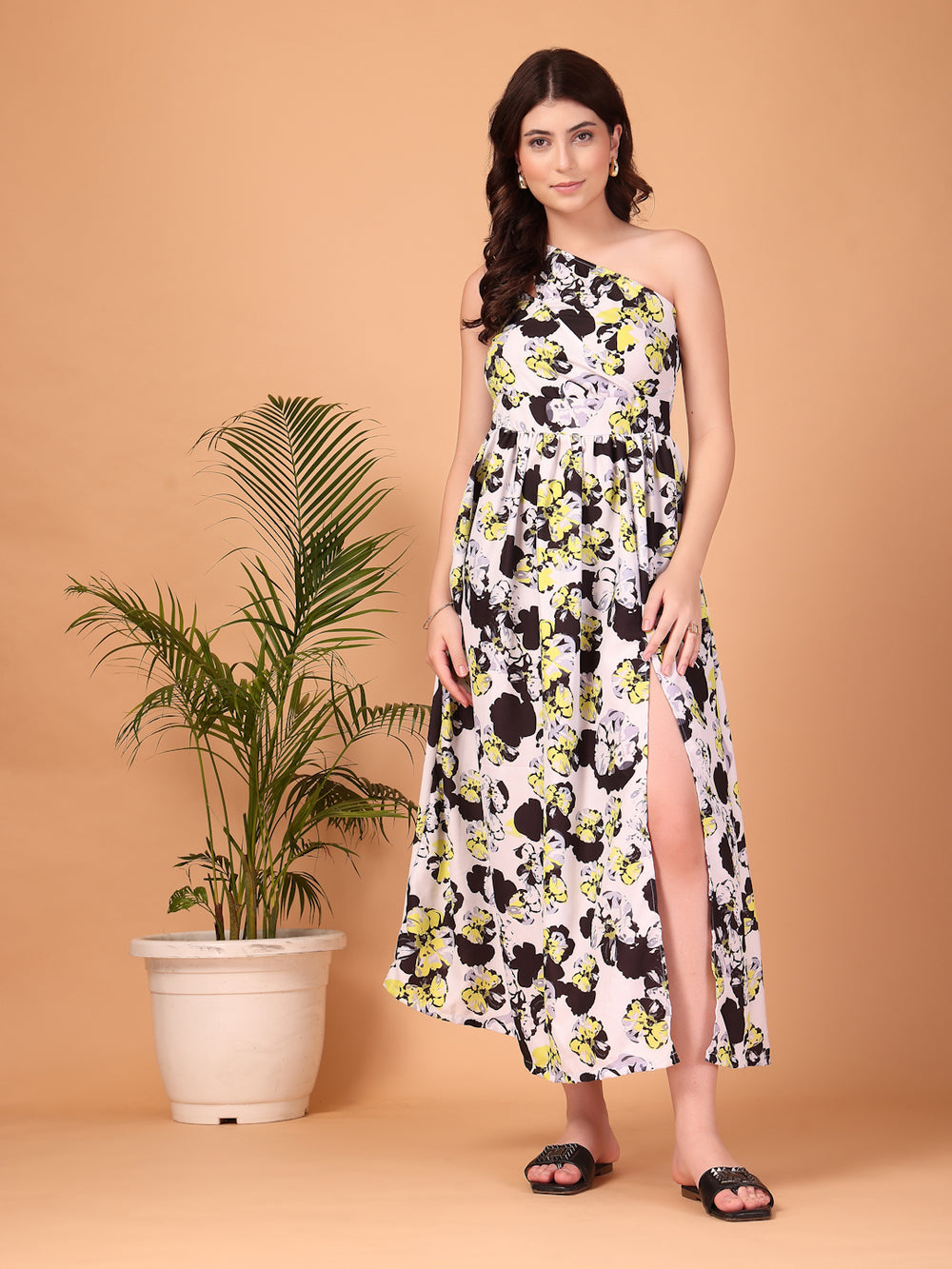 This one-shoulder maxi dress is bringing the energy with bold yellow-black florals, a leg-flaunting slit, and a silhouette that flatters every single curve. Whether it’s your beach vacay, cocktail sundowner, or just a “feel cute” day — this dress brings the drama without the effort 💃✨